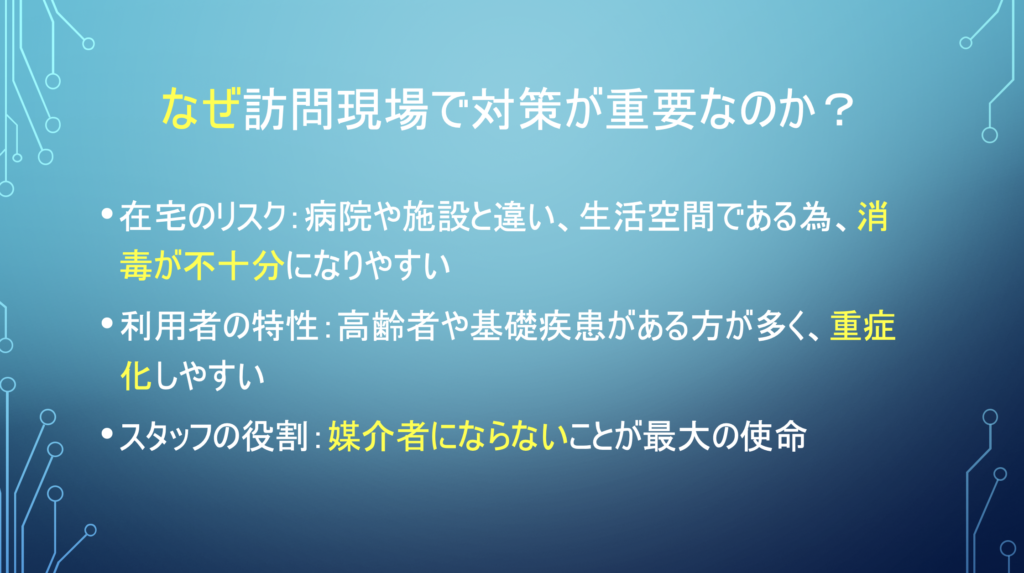 日常的に利用者様のご自宅へ入らせていただく仕事です。