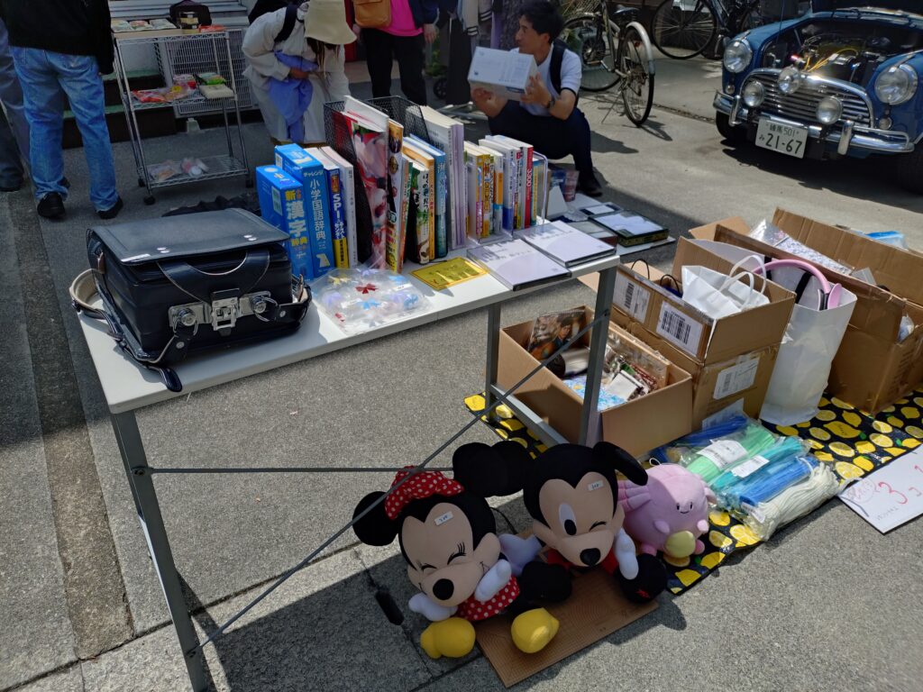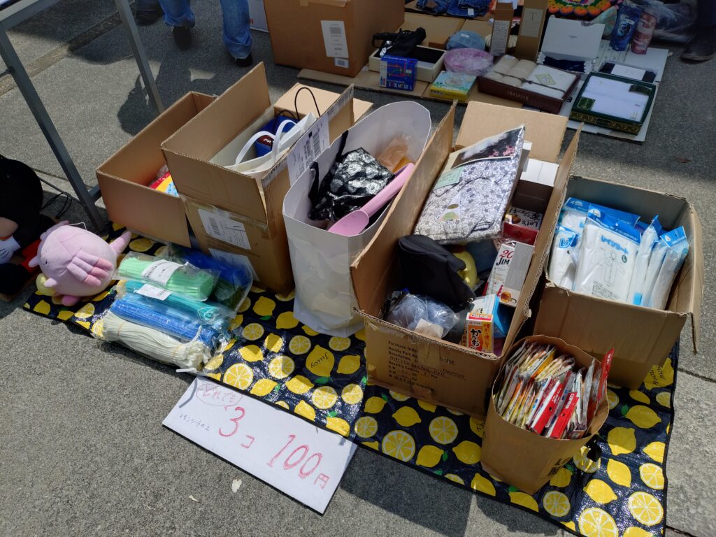 本社前のスペースには、日用品、衣類、本、雑貨、介護用品、子ども向けの商品など、さまざまな品物が並びました。