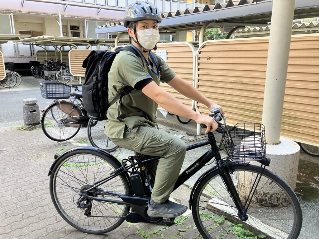 自転車で利用者さんのお宅へ訪問