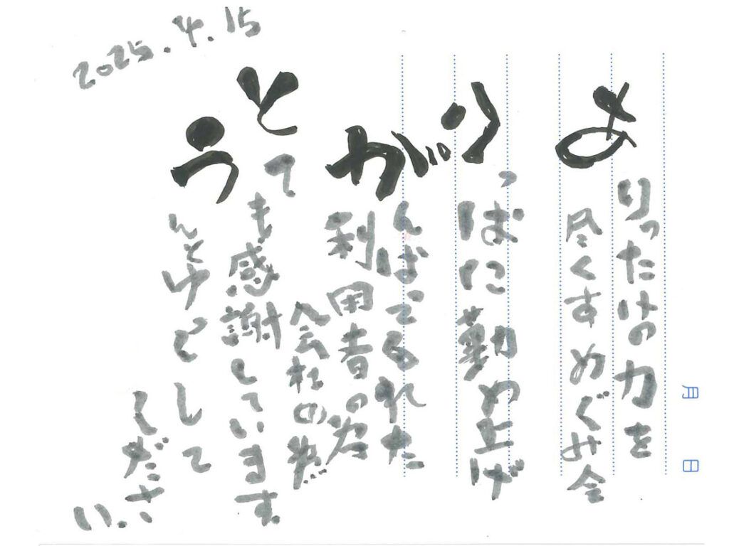 我々の原動力として、とても嬉しくなるのが「感謝の手紙」です。