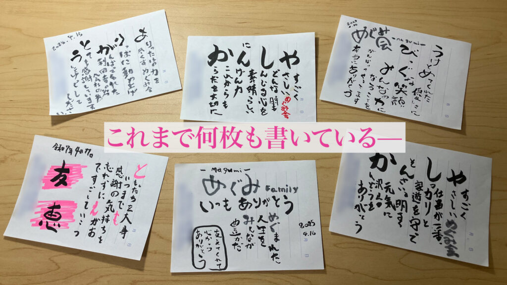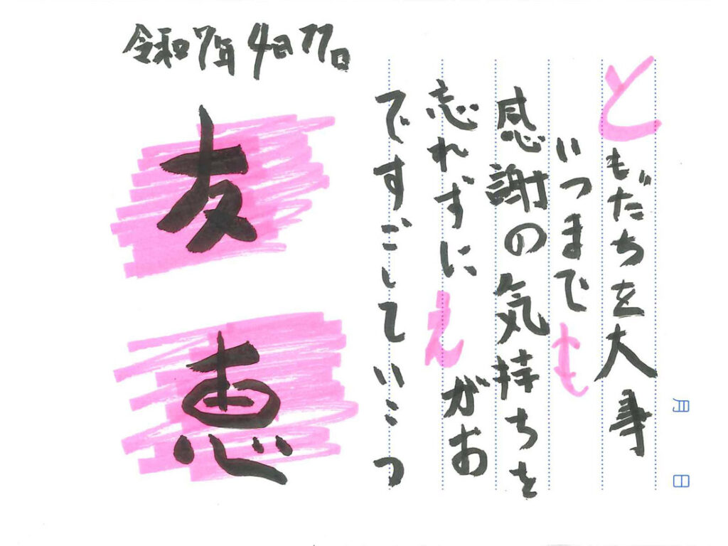 「やさしい めぐみ会」「どんな時もしんじる心」「にんげん力」
