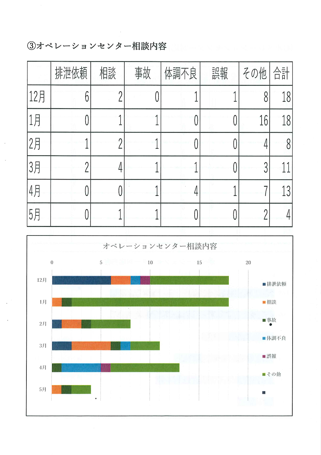 Q:オペレーターへの相談内容の排泄依頼相談とはどんな内容
