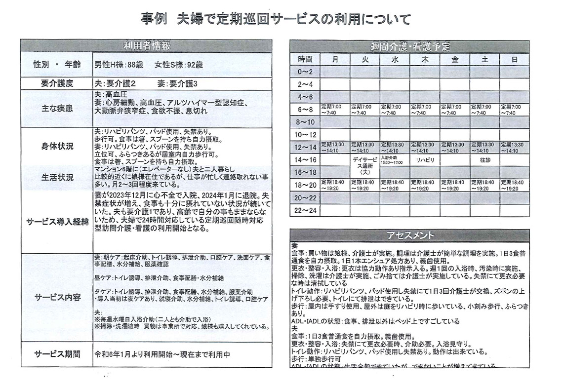 会議では、「夫婦で定期巡回サービスをご利用している」事例をご紹介しました。
