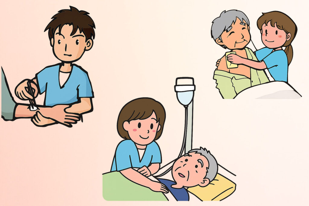 私たちは、医師の指示のもとで看護師がご自宅に伺い、心身のケアを行います。