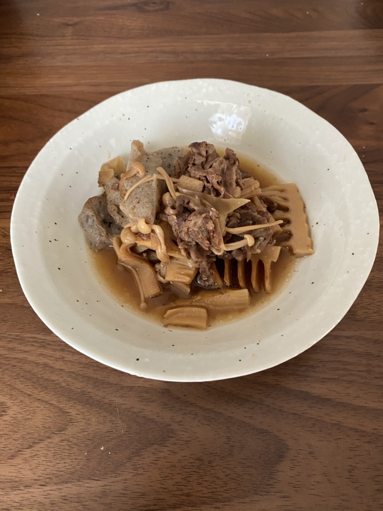 ●煮込み料理…「牛肉、こんにゃく、エノキと一緒に煮たものです。」