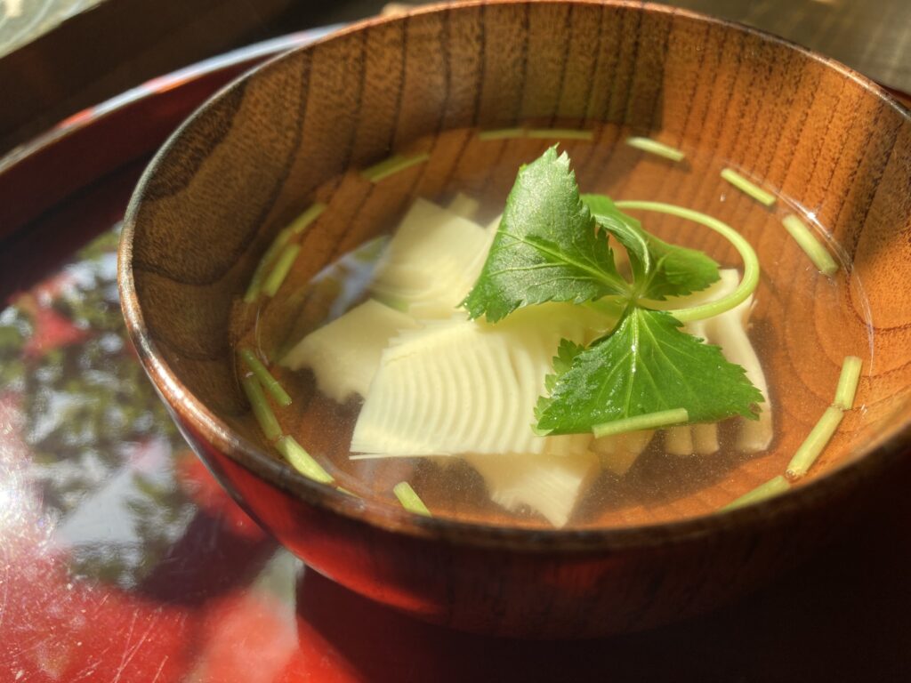 ⚫︎筍と三つ葉のお吸い物…「薄切りでもシャキシャキ!サクサク!うれしい食感。」