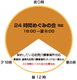 夜間(18:00─翌8:00)の時間帯、ケアコールにより訪問するサービスです。 夜間の突然のトラブルやお困りごとでも安心です。